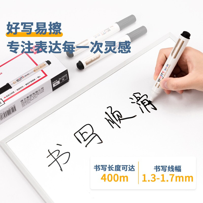 • 得力DL-33528 可擦白板笔 办公教学会议白板笔 黑色10支/盒