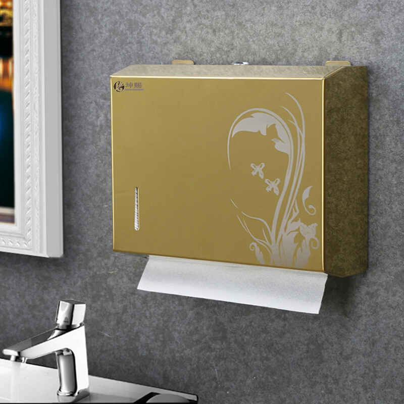 坤赐C101 不锈钢擦手纸盒卫生间抽纸盒洗手间免打孔纸巾架 拉丝红古铜