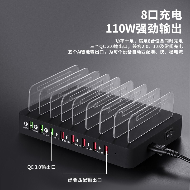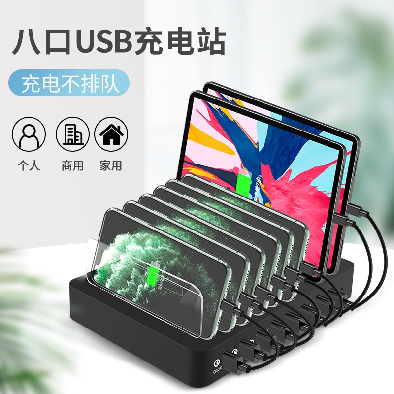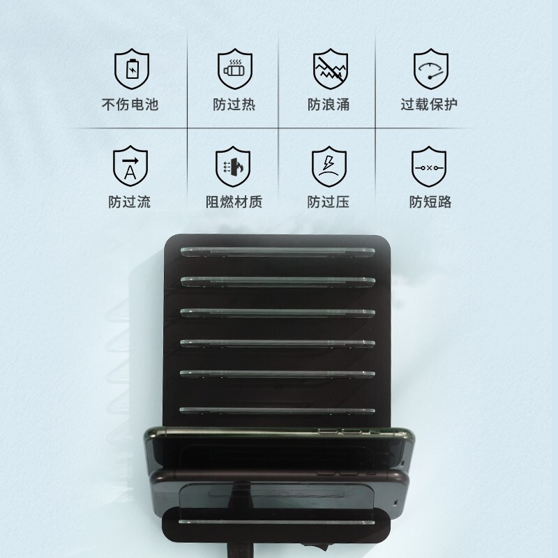 • 卓际桌面手机充电站多口USB充电器X6-QC3.0/黑色(含充电线)