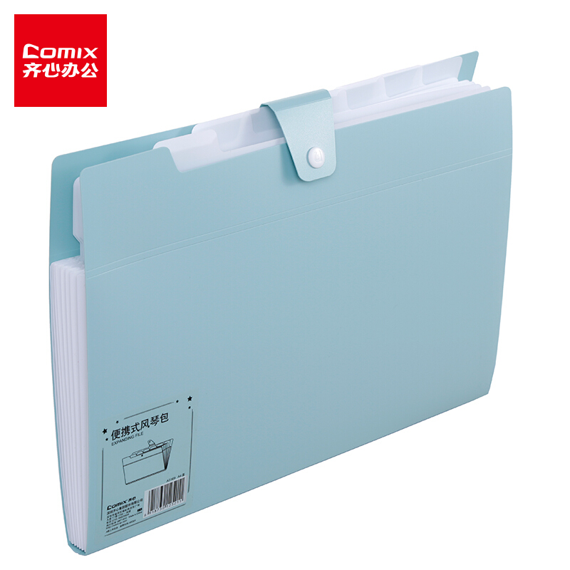 齐心(Comix)A3169 A4风琴包 8格便携式文件包 蓝