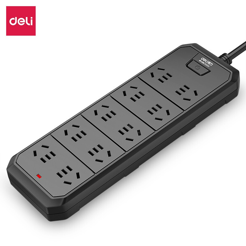 得力(deli) 新国标插座/插线板 黑色质感 质保三年 18342延长线插座丨5米-10孔位