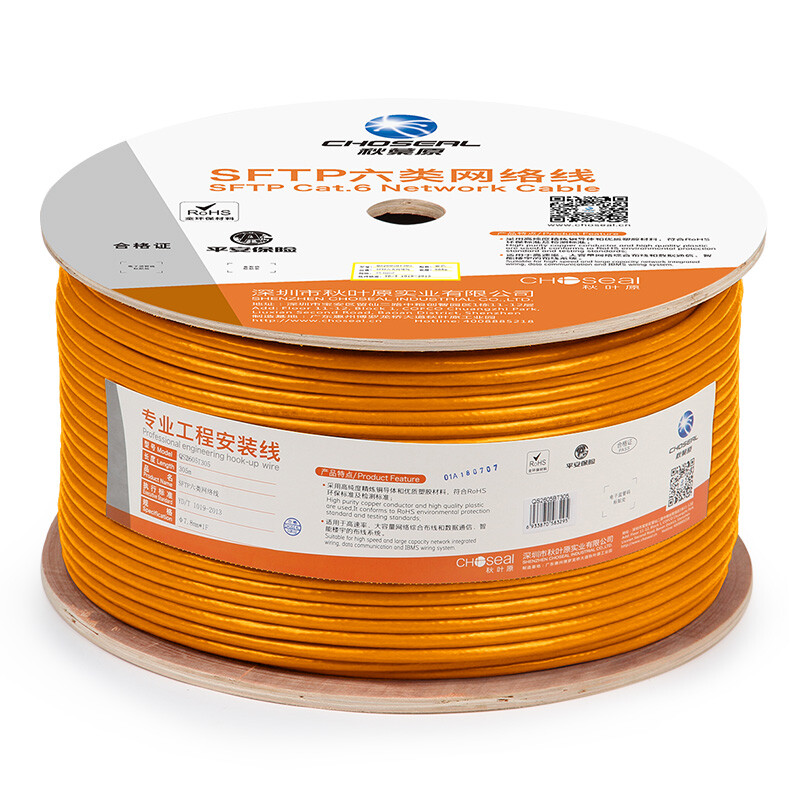 • 秋叶原(CHOSEAL)六类双屏蔽网线【商用版】抗干扰千兆铜线箱线橙色305米 QS2605T305