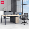 • 得力DP008 二人位办公桌组合单人 双人职员桌 简约现代四人桌 配储物柜机箱柜木纹