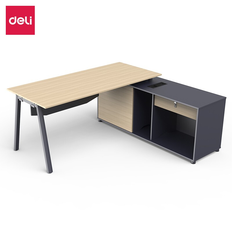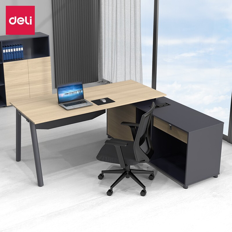 • 得力DP010 主管桌办公桌组合单人 双人职员桌 简约现代四人桌 配储物柜机箱柜木纹