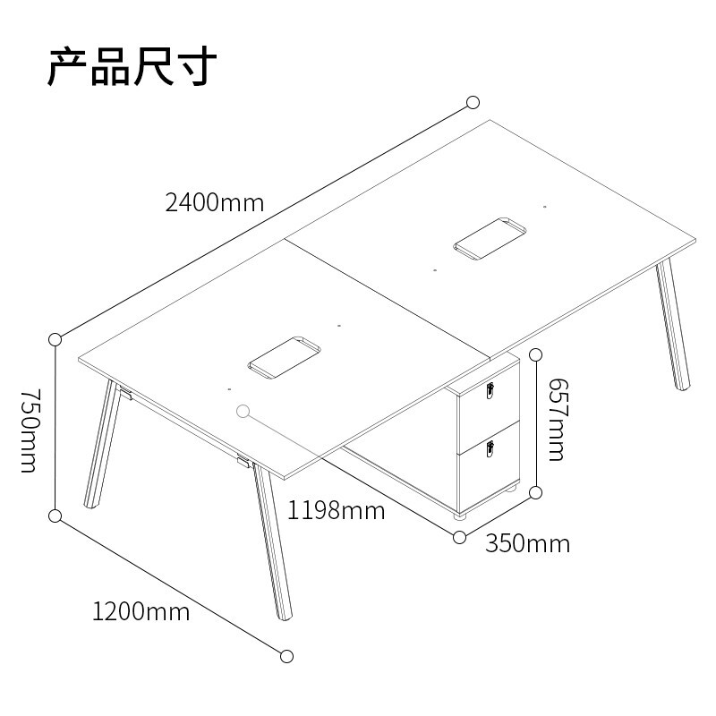 • 得力 DP008 二人位办公桌组合单人 双人职员桌 简约现代四人桌 配储物柜机箱柜 白