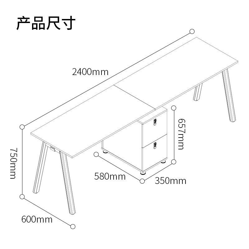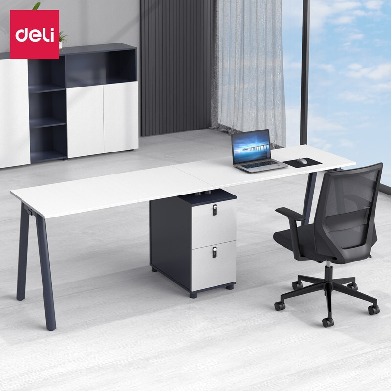 • 得力DP006 二人位办公桌组合单人 双人职员桌 简约现代四人桌 配储物柜机箱柜 白