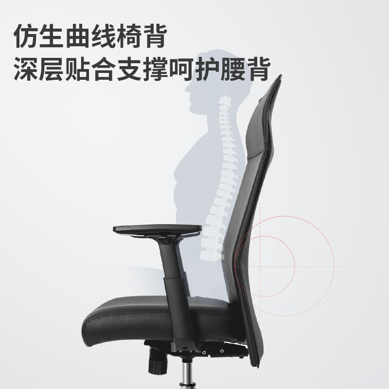 • 得力91002 电脑椅 家用办公椅 转椅人体工学皮椅子 时尚升降座椅 皮质扶手