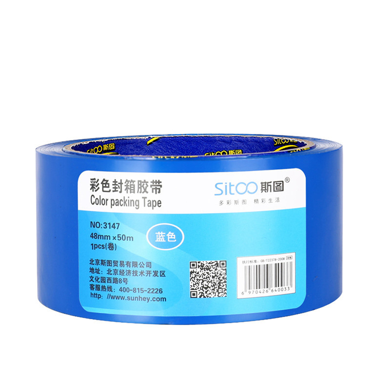 • 斯图sitoo 彩色胶带 标识分类胶带封箱胶带打包胶带快递胶带 蓝色 48mm*50m 1卷装