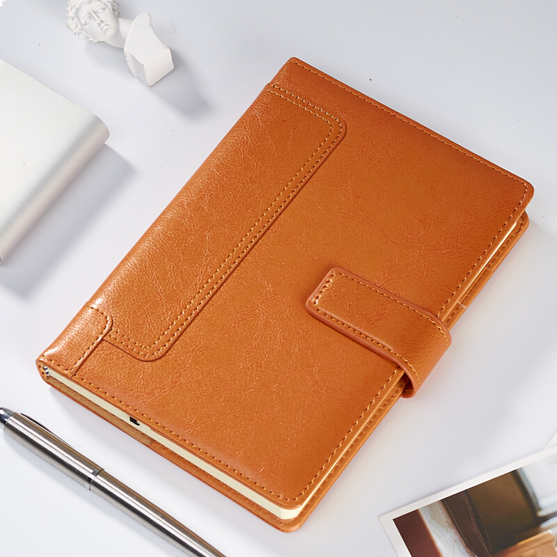 • 博文(bowen) 笔记本记事本皮面本会议本记录本皮套本可定制logo 橙色 A5小号
