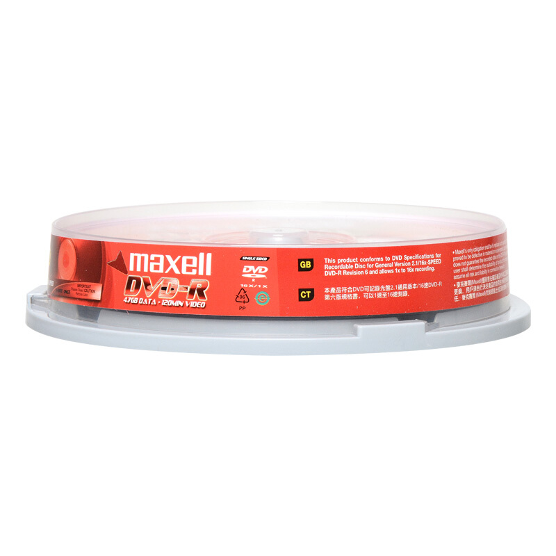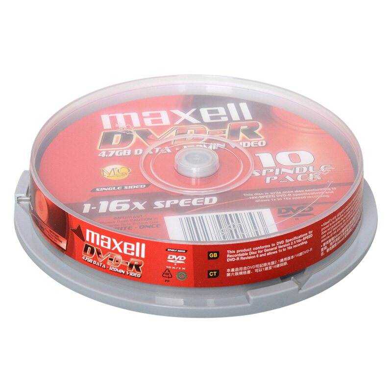 麦克赛尔(maxell)DVD-R光盘 刻录光盘 光碟 空白光盘 16速4.7G 桶装10片