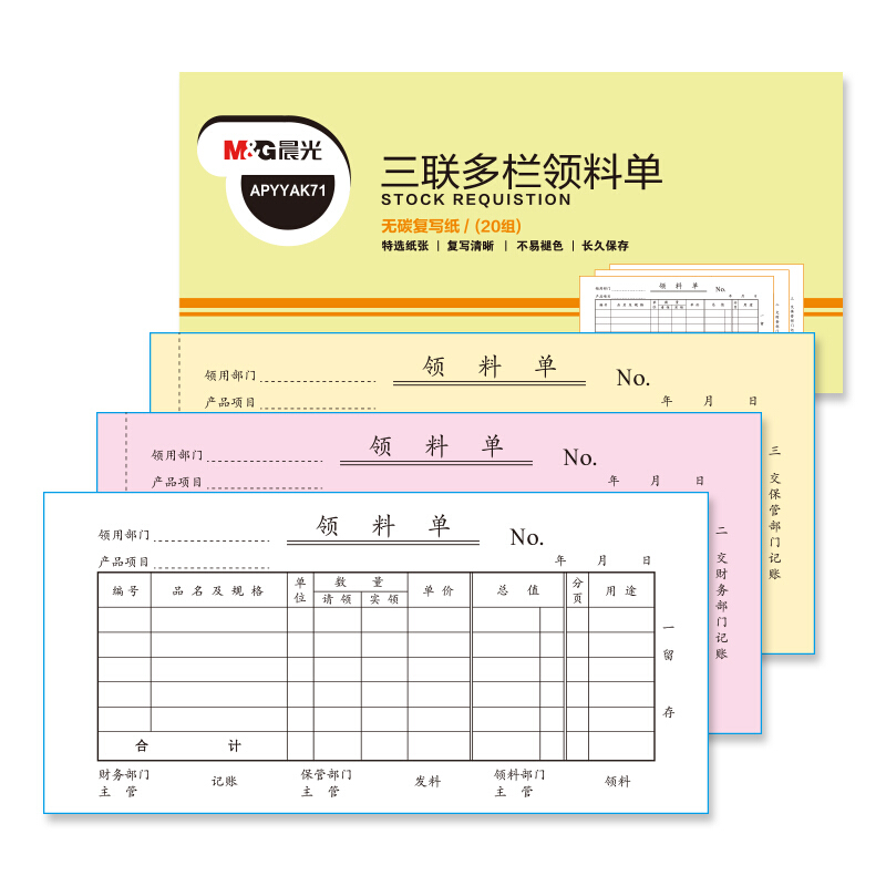 • 晨光APYYAK71 三联多栏领料单无碳复写纸 财务手写单