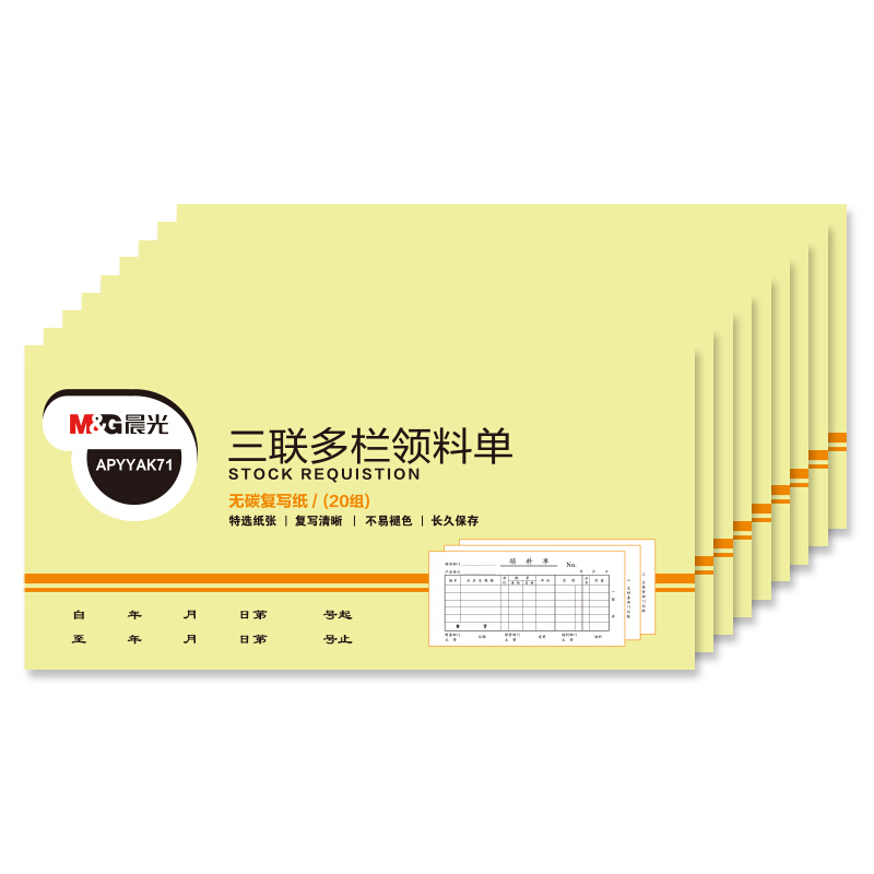 晨光(M&G)文具54K三联多栏领料单 无碳复写纸 财务手写单 办公用品 10本装APYYAK71