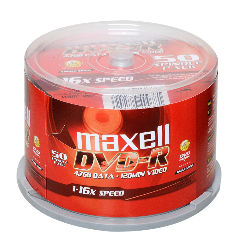 • 麦克赛尔(maxell)DVD-R光盘 刻录光盘 光碟 空白光盘 16速4.7G台产 商务金盘桶装50片