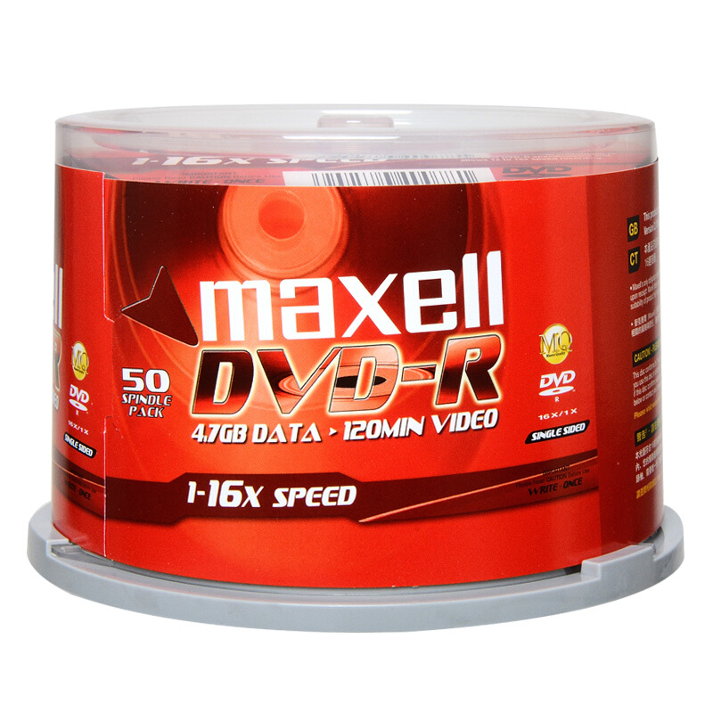 麦克赛尔(maxell)DVD-R光盘 刻录光盘 光碟 空白光盘 16速4.7G台产 商务金盘桶装50片