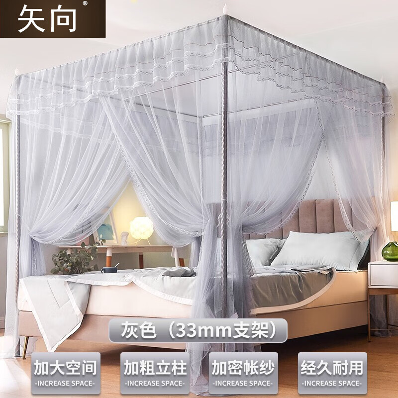 • 矢向蚊帐2022落地老式卧室纹账加厚加密三开门免安装 白色26mm加固粗杆 2.0m(6.6英尺)床