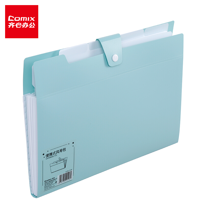 • 齐心(Comix) A4风琴包 5格便携式文件包 办公用品 蓝 A3168