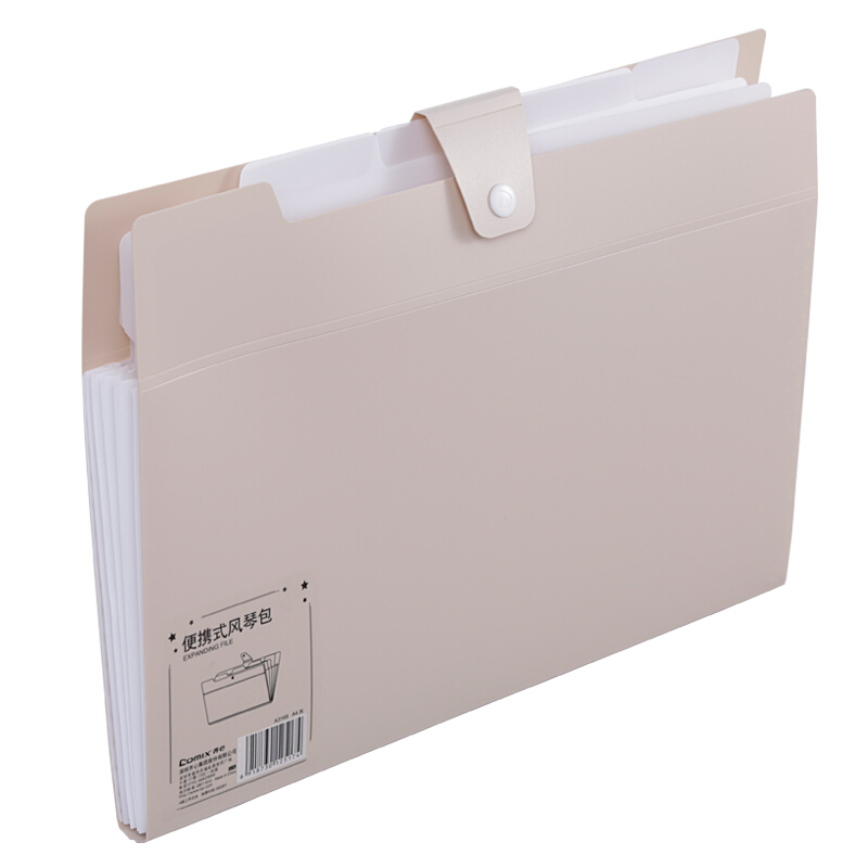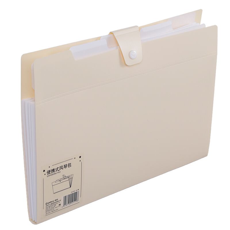 齐心(Comix) A4风琴包 5格便携式文件包 办公用品 蓝 A3168