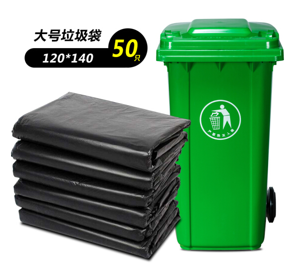 • 垃圾袋特大号 120*140 50只装 特厚黑色户外塑料垃圾袋适配240L垃圾桶