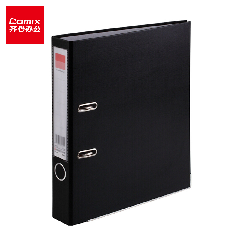 齐心A105N PVC2寸加厚型欧式快劳夹 A4文件夹带孔资料夹 两孔活页夹 黑色