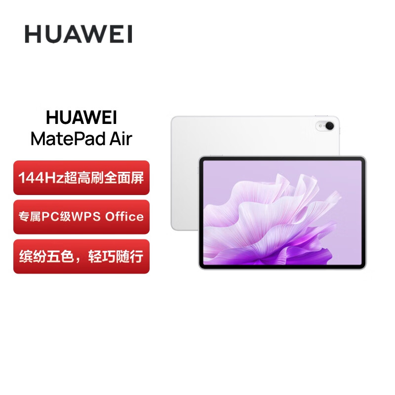 • 华为平板电脑MatePad Air 11.5英寸 144Hz高刷护眼全面屏 2.8K超清 移动办公影音娱乐平板 8+256GB 云锦白