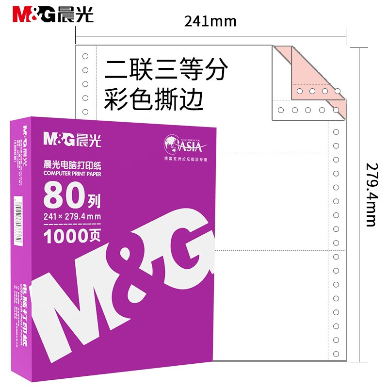 - 晨光APYY4S64 二联三等分电脑打印纸 彩色针式打印纸241-2-1/3 80列 撕边 色序:白红 1000页/箱