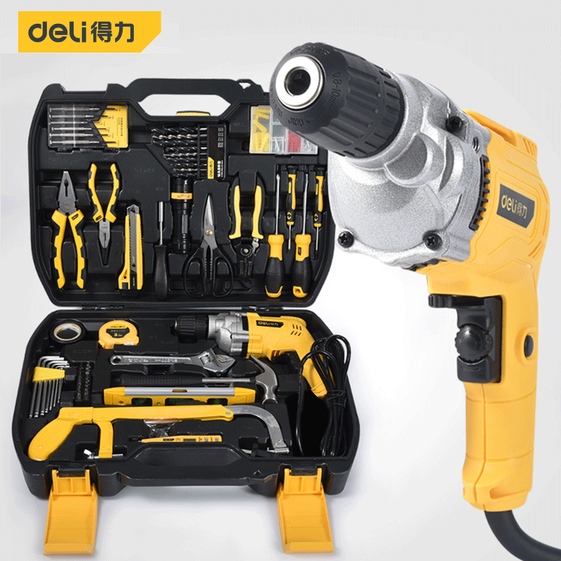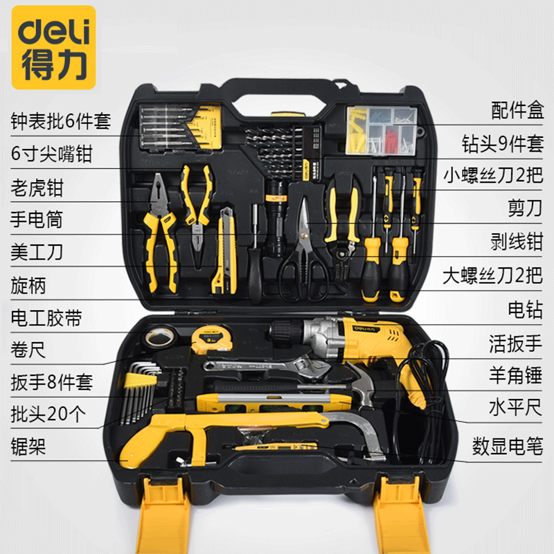 • 得力DL5966 工具箱套装【电钻综合套装138件套】羊角锤手锯