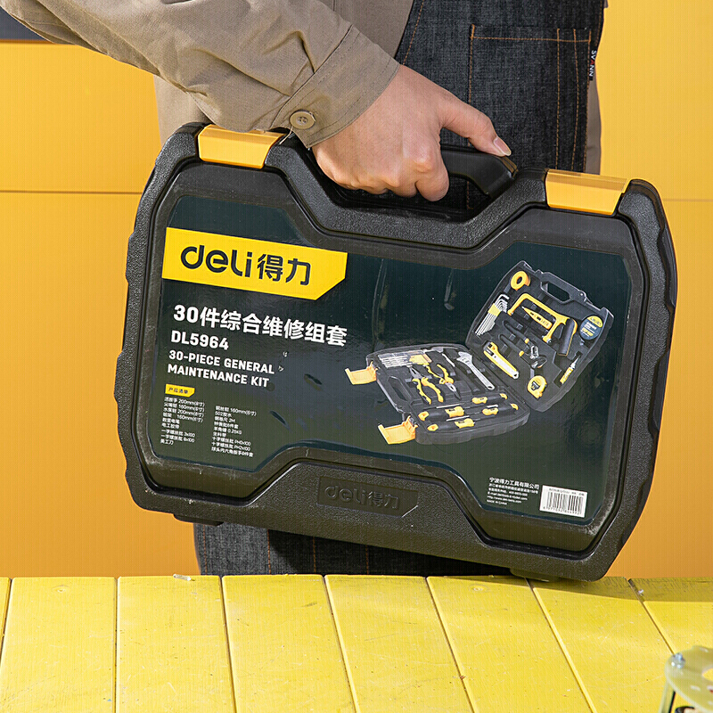 • 得力DL5964 工具箱套装【电工工具套组30件】螺丝刀扳手老虎钳