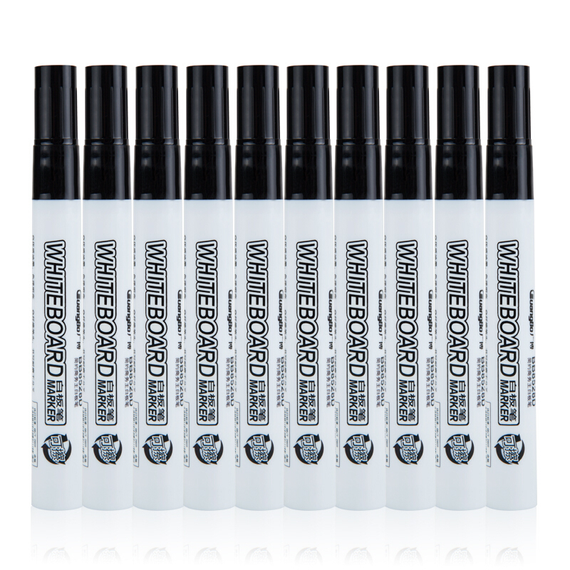 • 广博BB8528D 黑色可擦易擦白板笔 单头办公会议笔10支装