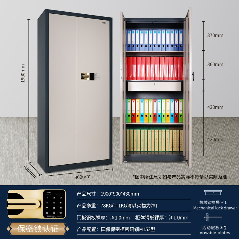 国保(Guub)保密柜M153-K2电子密码双门文件柜保密认证资料柜钢制档案凭证柜