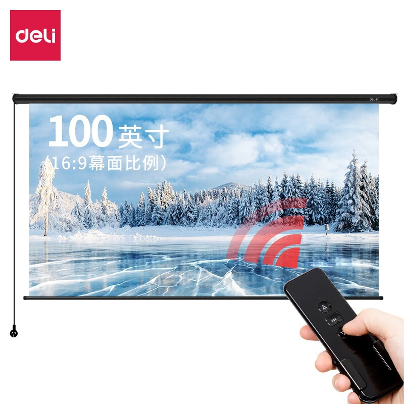 • 得力50452 100英寸16:9遥控电动光子幕布 投影幕布投影布(标配遥控器)
