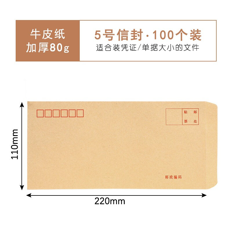广博EN-1加厚黄色牛皮纸信封5号白色增值税发票用信封信纸文件袋档案袋 黄色5号220*110mm(100个)