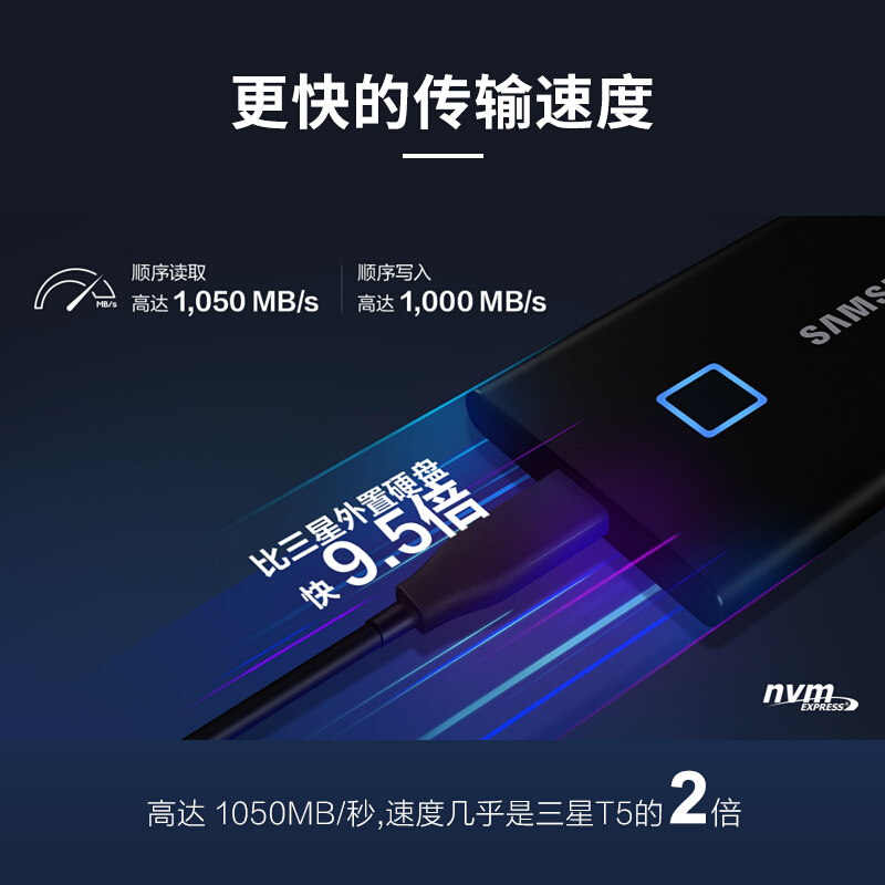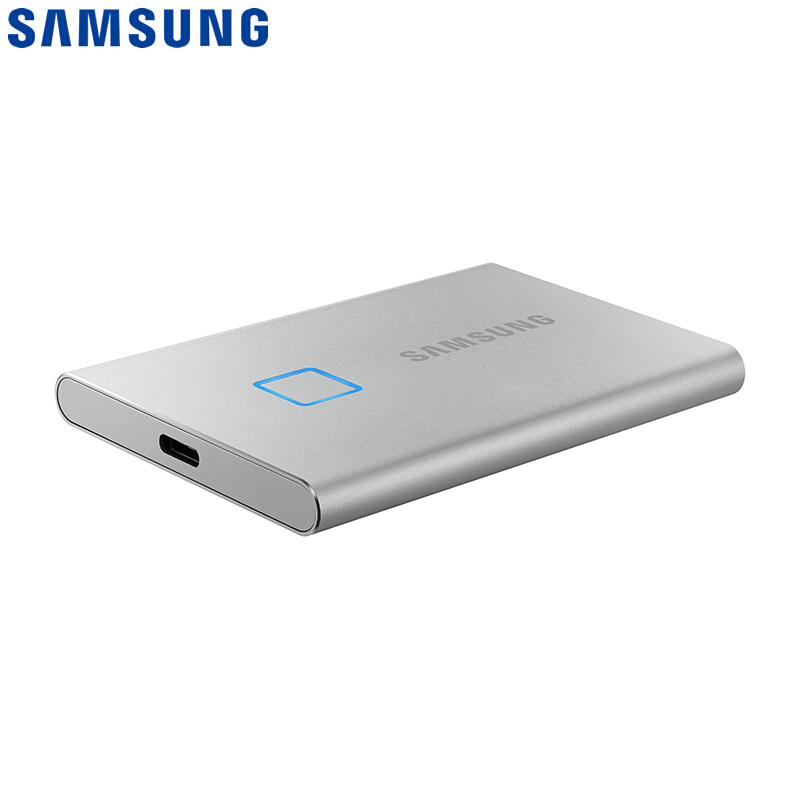 - 三星2TB Type-c移动硬盘 固态PSSD 指纹识别 NVMe高速传输1050MB/秒 T7 Touch时尚银MU-PC2T0S