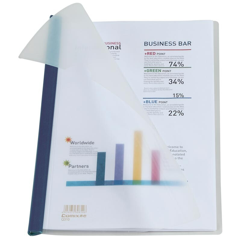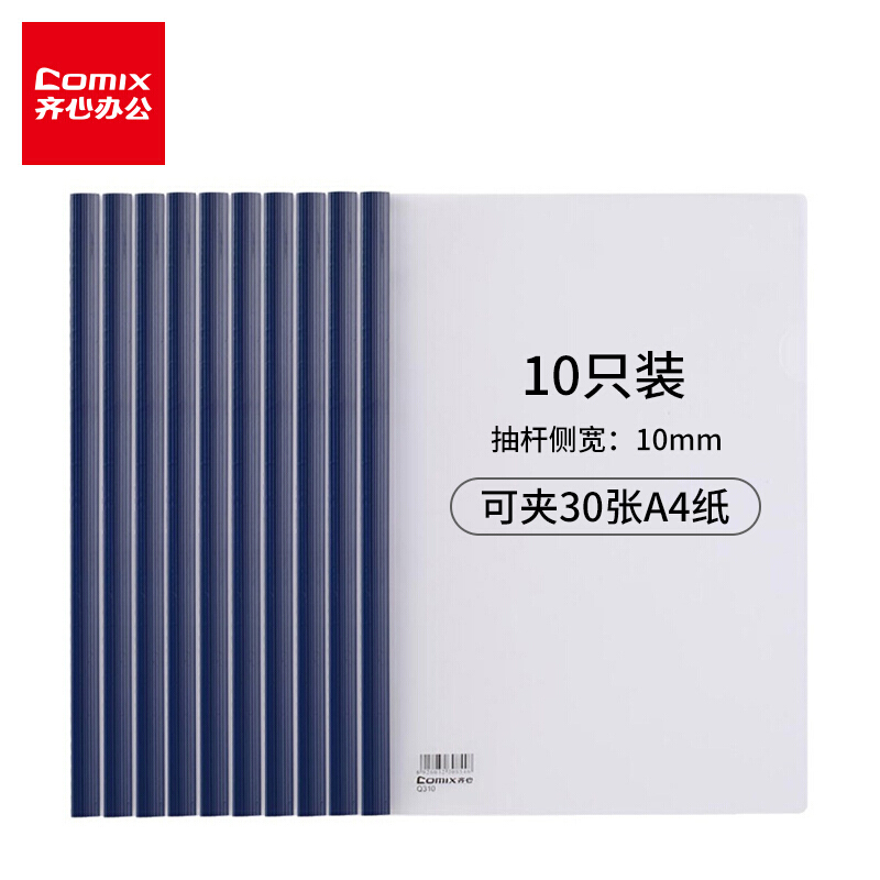 • 齐心(Comix) 强力加厚型抽杆夹/文件夹/报告夹/拉杆夹A4 Q310 蓝色 办公文具10个装