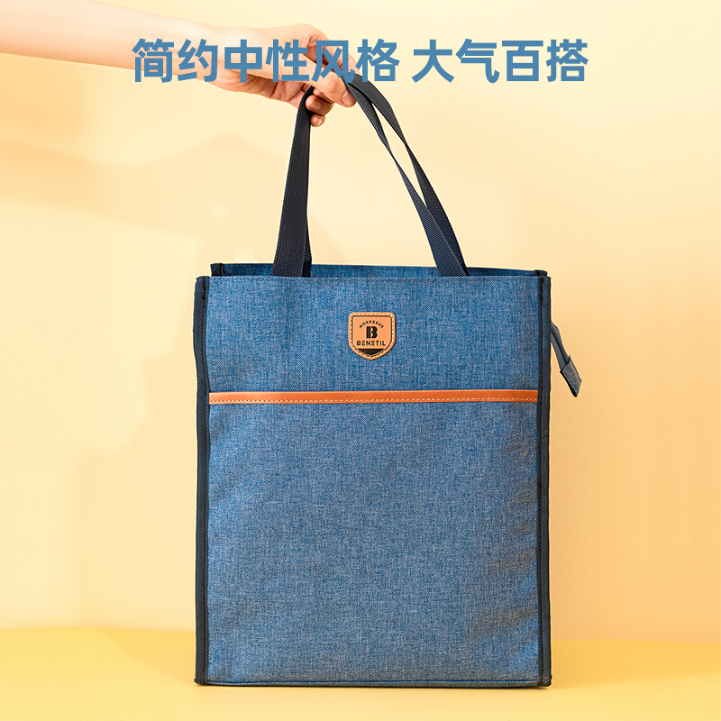 得力(deli)学生手提袋补习袋简约拉链帆布文件袋 卡通大容量资料包A4收纳袋 深蓝色 72618