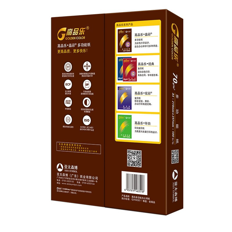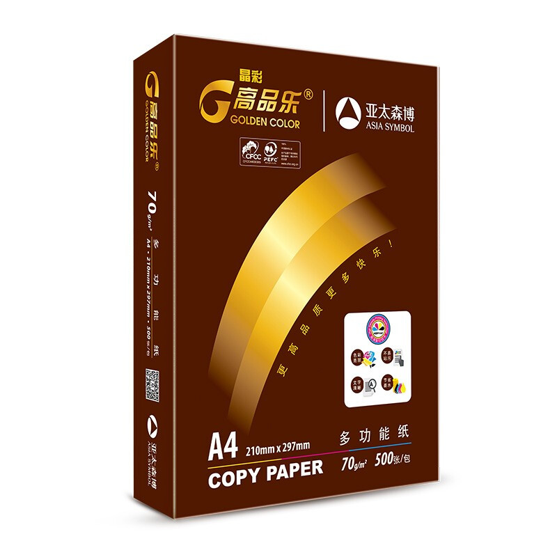 高品乐(GOLDEN COLOR) 70gA4 亚太森博(晶彩)高品乐70gA4高级多功能复印纸(复印、打印、传真等) 计价单位/包 500张/包