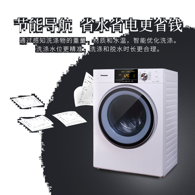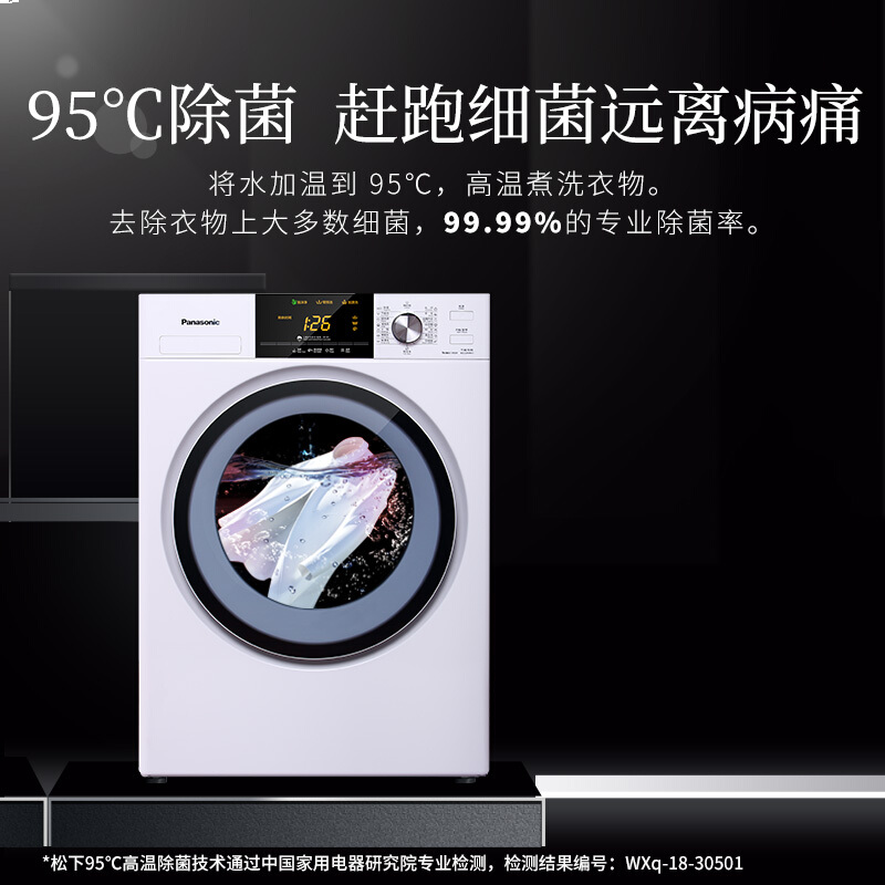 • 松下XQG100-EJDCP 滚筒洗衣机 全自动10公斤 高温除菌 变频三维立体洗 超薄机身