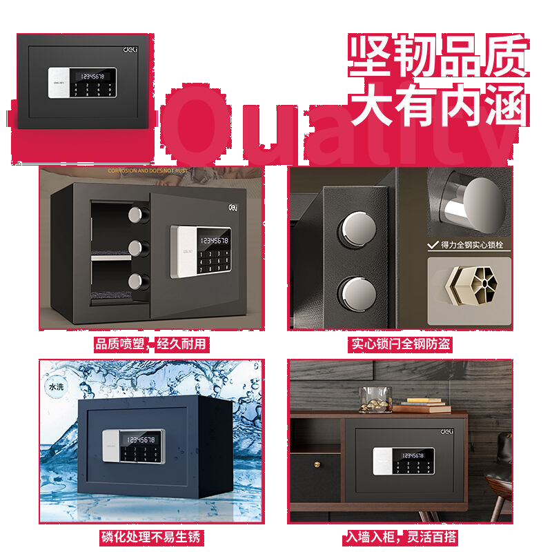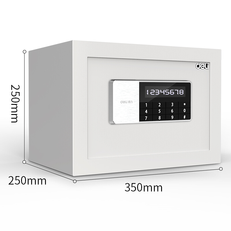 得力(deli)保险柜 高25CM小型入墙密码保管箱 办公家用保险箱 雪域白 锐剑92619