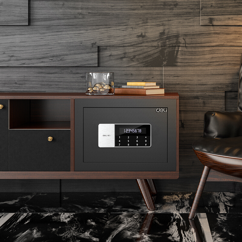 得力(deli)保险柜 高25cm家用小型密码保险箱保管箱 可入墙入柜 锐剑92619