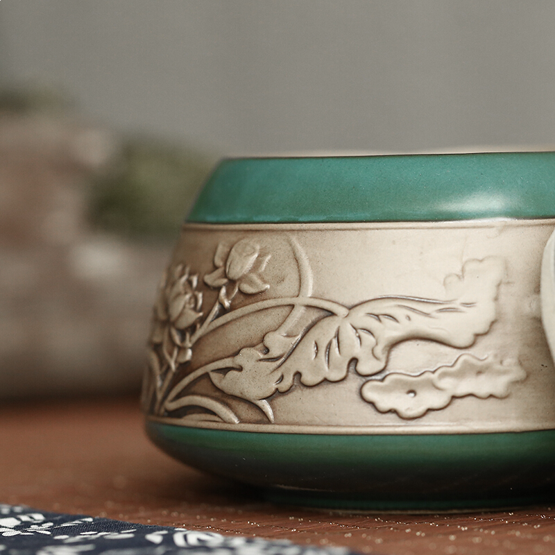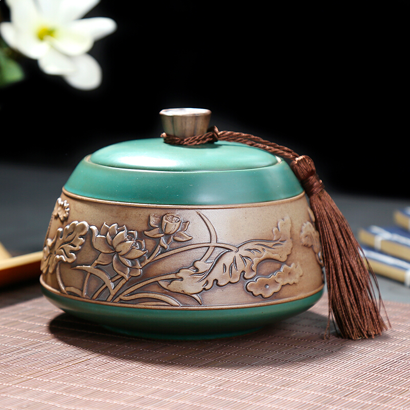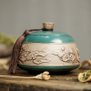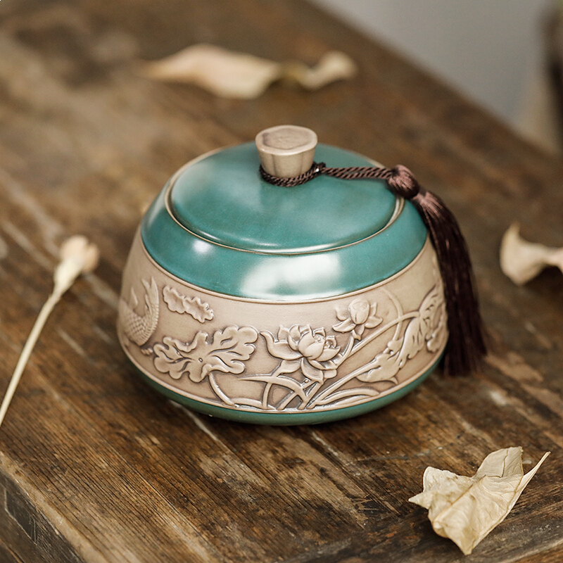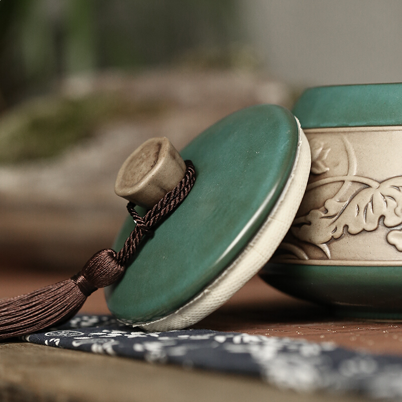• 言艺茶叶罐陶瓷便携普洱茶罐大号茶叶盒储茶罐 沐樱茶叶罐绿(可放约200g铁观音)