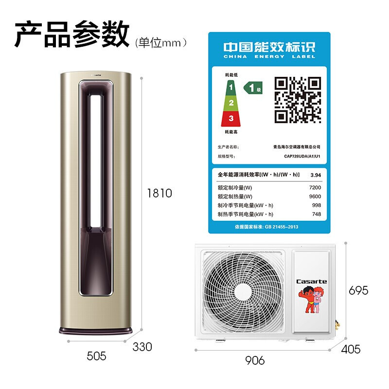 - 卡萨帝 (Casarte)3匹变频立式空调柜机 一级能效 自清洁 智能 空调 CAP728UDA(A1)U1
