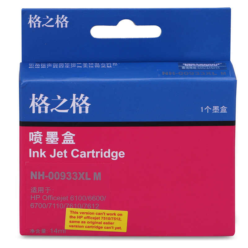 • 格之格932XL墨盒 适用惠普7110/7610 7612/7510 7512 6700 6100 6600 933XL大容量4色套装