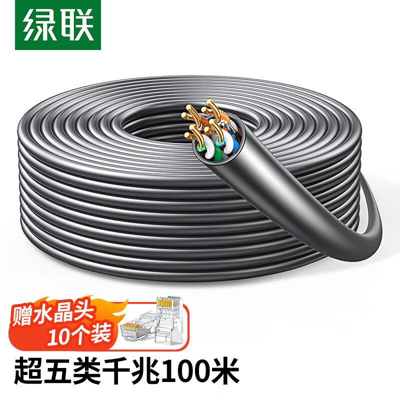 • 秋叶原(CHOSEAL) 超五类网线 CAT5e纯铜线芯综合布线POE供电 非屏蔽网络线灰色50米 QS2608AT50S
