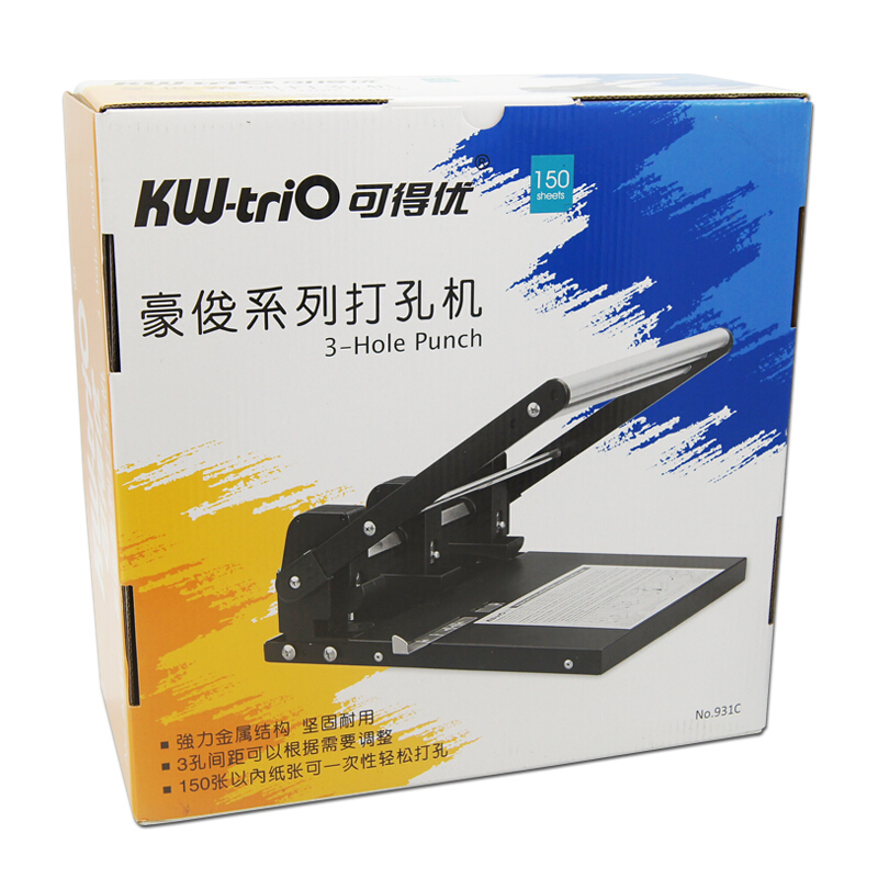 • 可得优(KW-triO)三孔重型打孔机 加厚孔距可调 6MM手动3孔打洞机可打150张 931C 931C打孔机一台