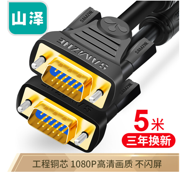 • 山泽VGA3+6 工程级VGA延长线 VGA公对母连接线 电脑显示器电视视频加长线 针/孔5米VF-2050