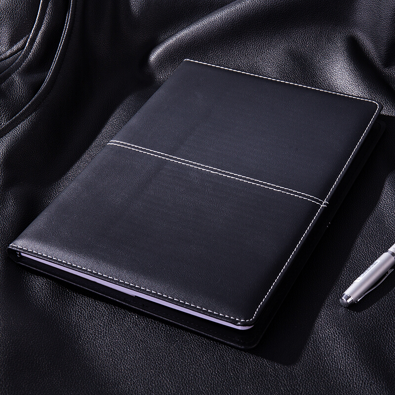 得力3324磨砂商务皮面本25K112张 会议记事本笔记本子 黑色
