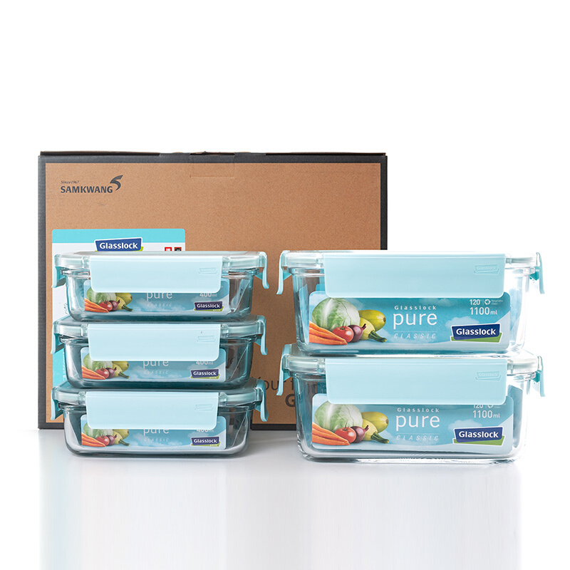 Glasslock韩国进口钢化玻璃保鲜盒 耐热微波炉加热饭盒便当盒 5件套装 GL2136