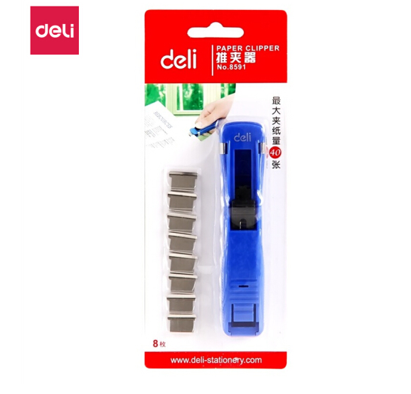 • 得力(deli) 8591 办公装订推夹器 可夹纸张数40张 蓝色推夹器+8枚补充夹
