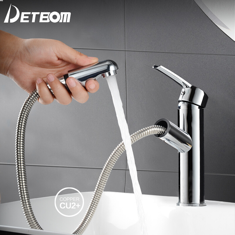 德国Detbom抽拉式水龙头冷热面盆洗手盆水龙头 浴室洗脸盆卫生间台盆水龙头单孔可洗头伸缩
