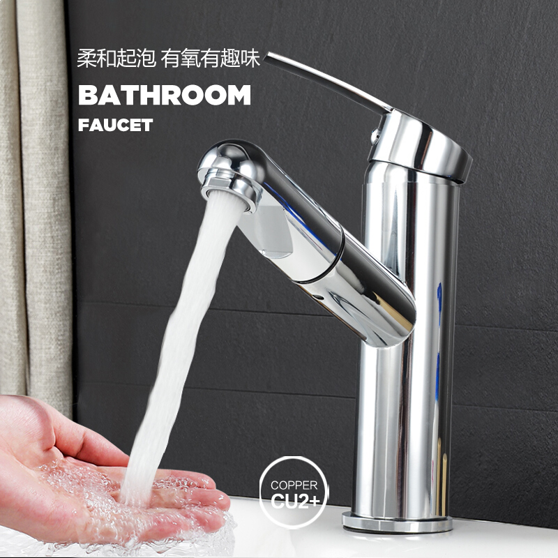 • 抽拉式水龙头 冷热面盆洗手盆水龙头 浴室洗脸盆卫生间台盆水龙头单孔可洗头伸缩