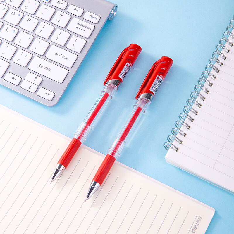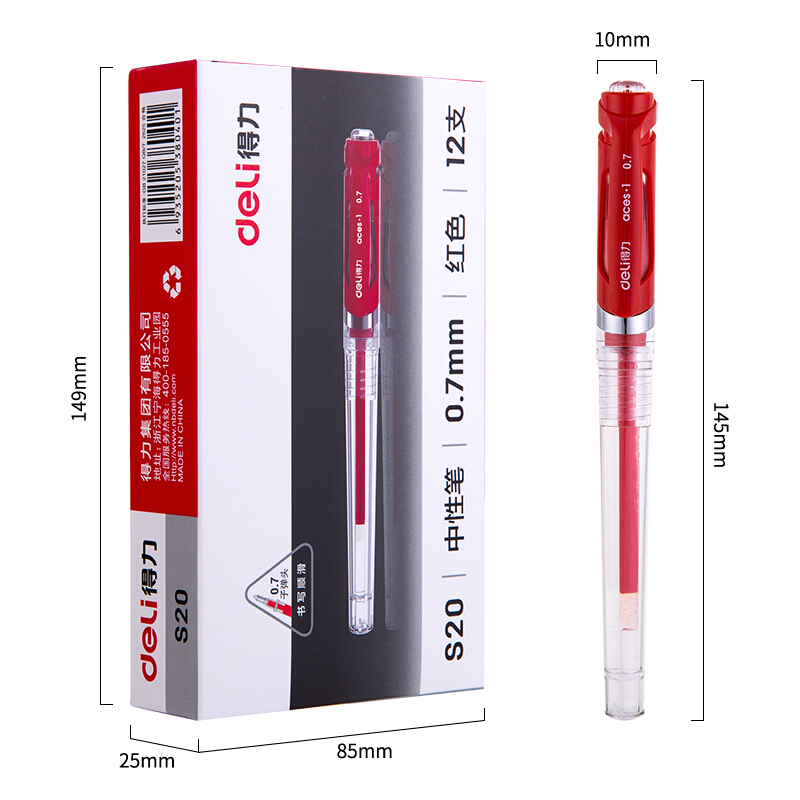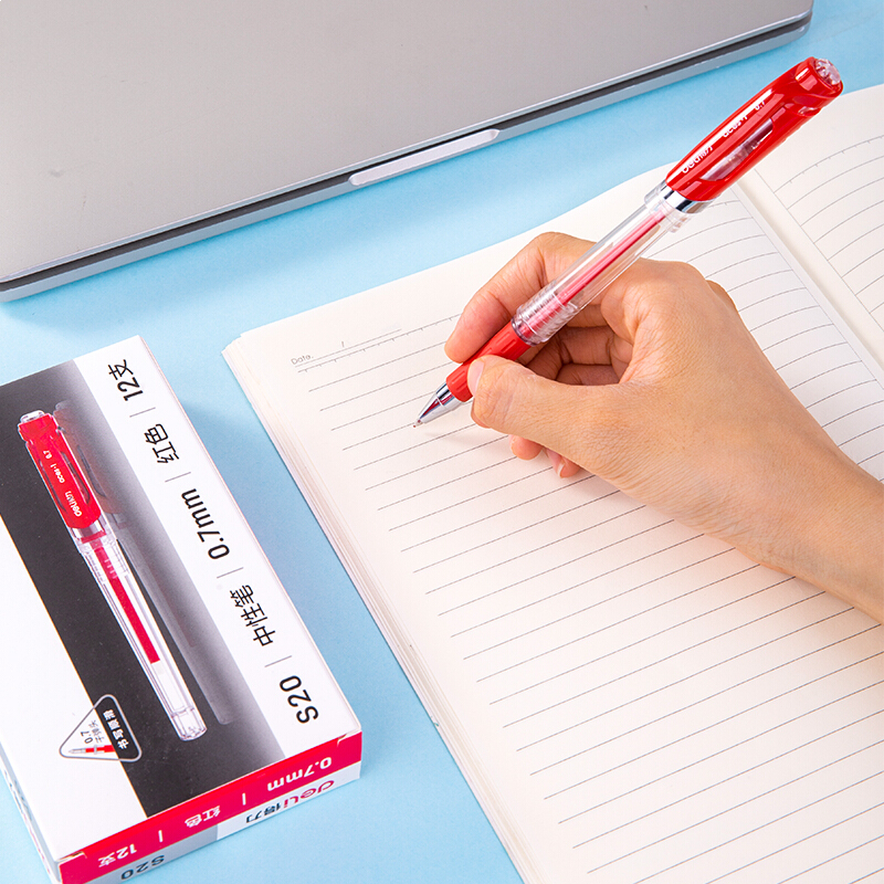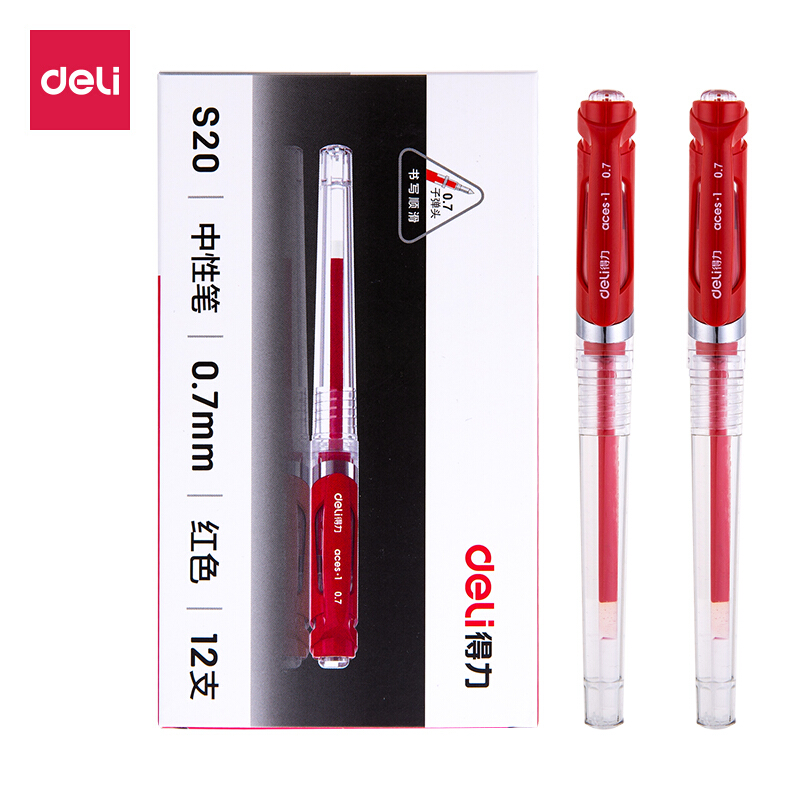 • 得力DL-S20红 0.7mm办公中性笔水笔签字笔 办公用品 12支/盒